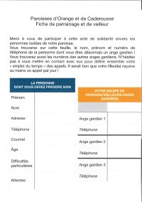 Dans notre paroisse, même sans les mesures de confinement, il y a de nombreuses personnes isolées (sans internet, sans moyen de déplacement, fragiles dans leur santé...). Nous voulons constituer autour d’elles un trio de veilleurs / anges gardiens.